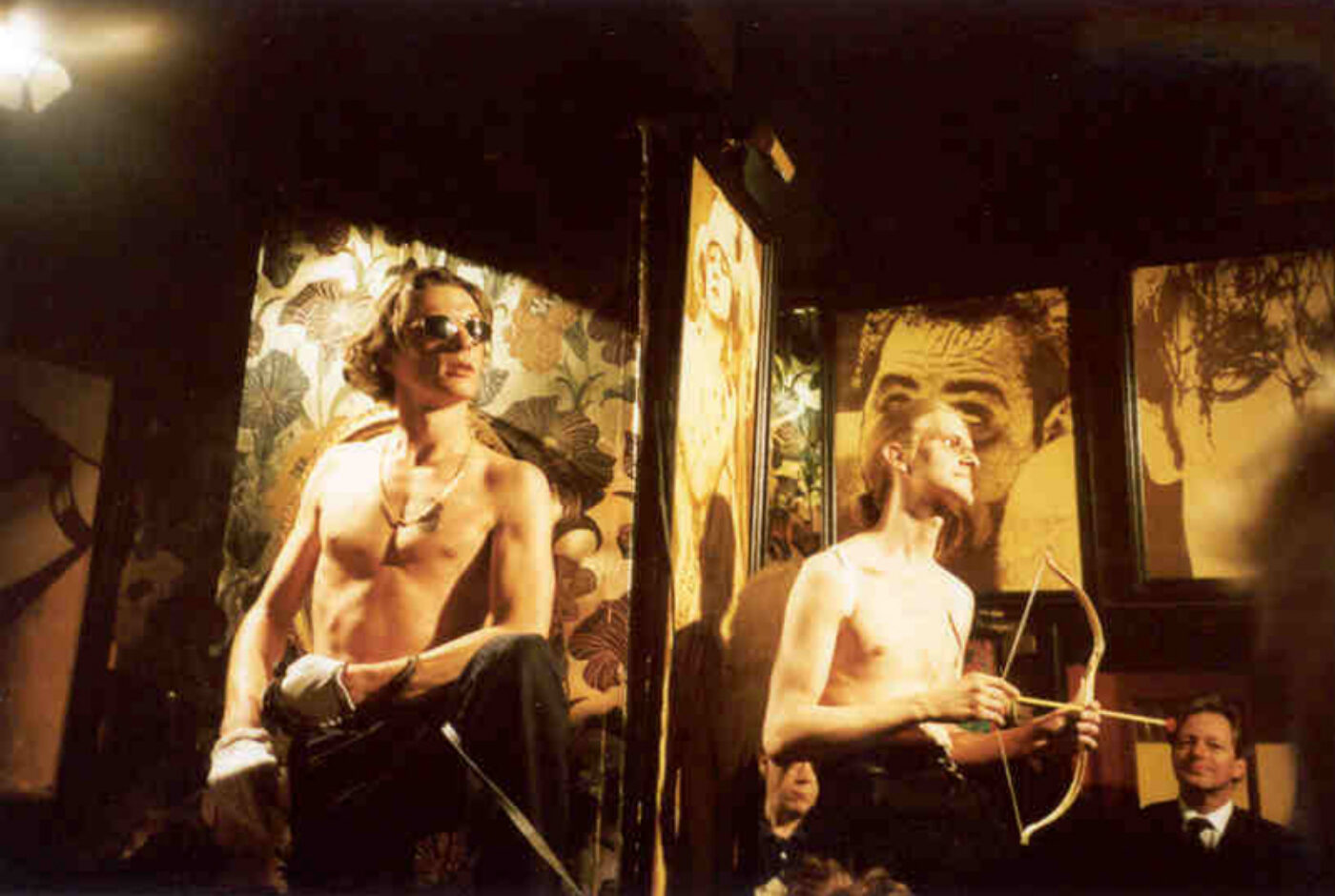 (I) Ceci marquait la naissance d'Ontroerend Goed comme compagnie de théâtre. Alexander et Joeri ont inventé deux personnage dérangé, Frank et Dirk, ‘nightclub artists from New York’, qui pimentaient la présentation d'un nouveau receuil de poésie "Retour au Grenier" avec des sessions de bondage, des images crus de Hitler/Jesus, American Psycho, des anges jouant de la harpe et une grotesque élection de Miss Anal dans le public. PORROR, bref pour Porno, Horreur et Poésie, était un succès instané dans le "underground". On dépassait les frontières entre plateau et public. Il y avait même des rumeurs qu'on frappait les spectateurs.