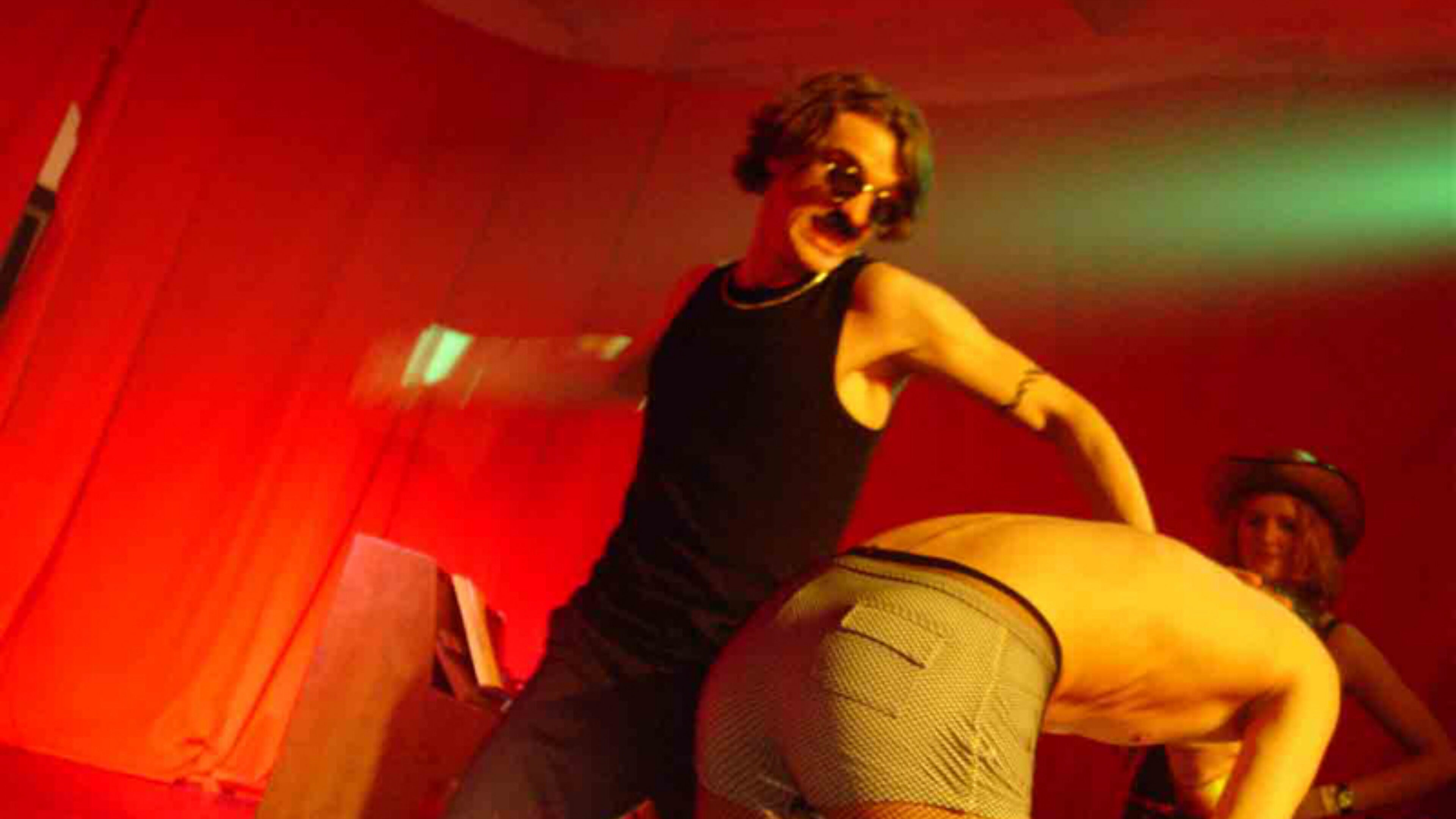 (III) Le théâtre absurde et la performance remplaçaient le cabaret et le sideshow dans la troisième partie de la trilogie. Au milieu du tumulte de la guerre en Iraq, le manipulateur Dirk présentait une série de scènes absurdistes compliquant trois personnages américains râtés et clichés: une cheerleader trop vieille, une black furieuse et un cowboy imbécile qui rêvait d'être chanteur country. La performance était un commentaire du théâtre comme endroit de recherche d'attention sans cesse, qui dégénérait en images sans goût et honteuses.